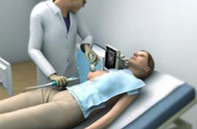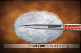 The procedure for our ProSense system begins with the introduction of our proprietary disposable probe into the tumor through a small pea-sized incision in the skin while the patient is under local anesthesia and/or sedation. The probe is guided by high-resolution ultrasound (for breast tumors) or computed tomography (for other indications). For some indications we use guiding needles (introducers) in order to guide the probe to the tumor. Once the probe is in place, LN2 is introduced into the probe in a closed-loop circuit, so that LN2 does not enter the body, and creates a freezing zone around the tip of the probe. During the freeze cycle, an ice ball forms in the freezing zone and encompasses the tumor, ablating the cancer or benign tumor, while the ice ball can be monitored by the physician in order to try to avoid causing damage to the healthy tissue surrounding the tumor. Several minutes after the freezing procedure is completed, the ice ball thaws and as a result thereof, there is no need for surgical removal of the dead tumor tissue, as the dead tissue is absorbed by the body in a natural process. The entire cryoablation procedure with our ProSense system generally takes between 15 to 40 minutes, depending on the size, type and location of the tumor (see “– Our Products” for additional information). Pictured below is our system forming an ice ball (which in practice forms around the tissue within the body) in ultrasound gel.